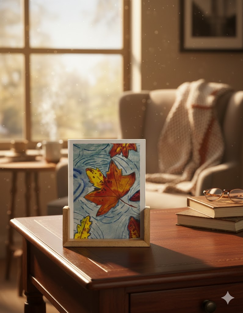 The Maple Leaf Wooden Stand features a graceful Artndirt-style sketched design inspired by the beauty of nature and seasonal change. Handcrafted on natural wood, the fine line artwork highlights the elegance of the maple leaf while preserving a warm, earthy aesthetic.